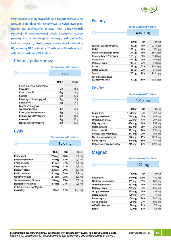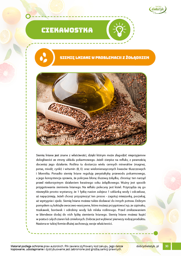 Dodatkowo do opracowanego planu dietetycznego otrzymasz atrakcyjnie przygotowane ciekawostki i wiadomości żywieniowe, które mam nadzieję pozwolą Ci zrozumieć wiele spraw związanych z nurtującym Cię problemem, a także przyczynią się do zwiększenia ogólnej wiedzy żywieniowej.