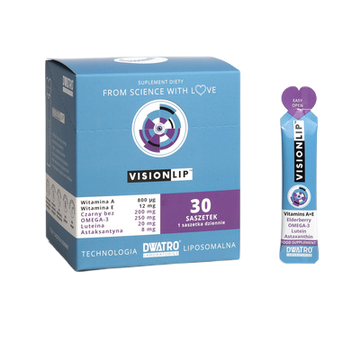 Unikalne połączenie luteiny, astaksantyny, omega-3, czarnego bzu, witaminy A, E i C w postaci żelu liposomalnego.