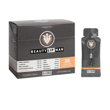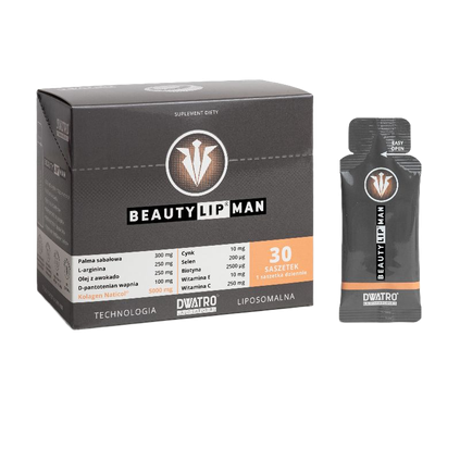 woda oczyszczona, kolagen rybi Naticol®, fosfolipidy z lecytyny słonecznikowej, substancja utrzymująca wilgoć: glicerol, olej z owoców plamy sabałowej (Serenoa repens, Bartram, Small) standaryzowany na zawartość 85% kwasów tłuszczowych, L-arginina, olej z awokado, witamina C (L-askorbinian sodu), kwas pantotenowy (D-pantotenian wapnia), cynk (glukonian cynku), witamina E (D-alfa-tokoferol), naturalny aromat, biotyna (D-biotyna), selen (L-selenometionina).
